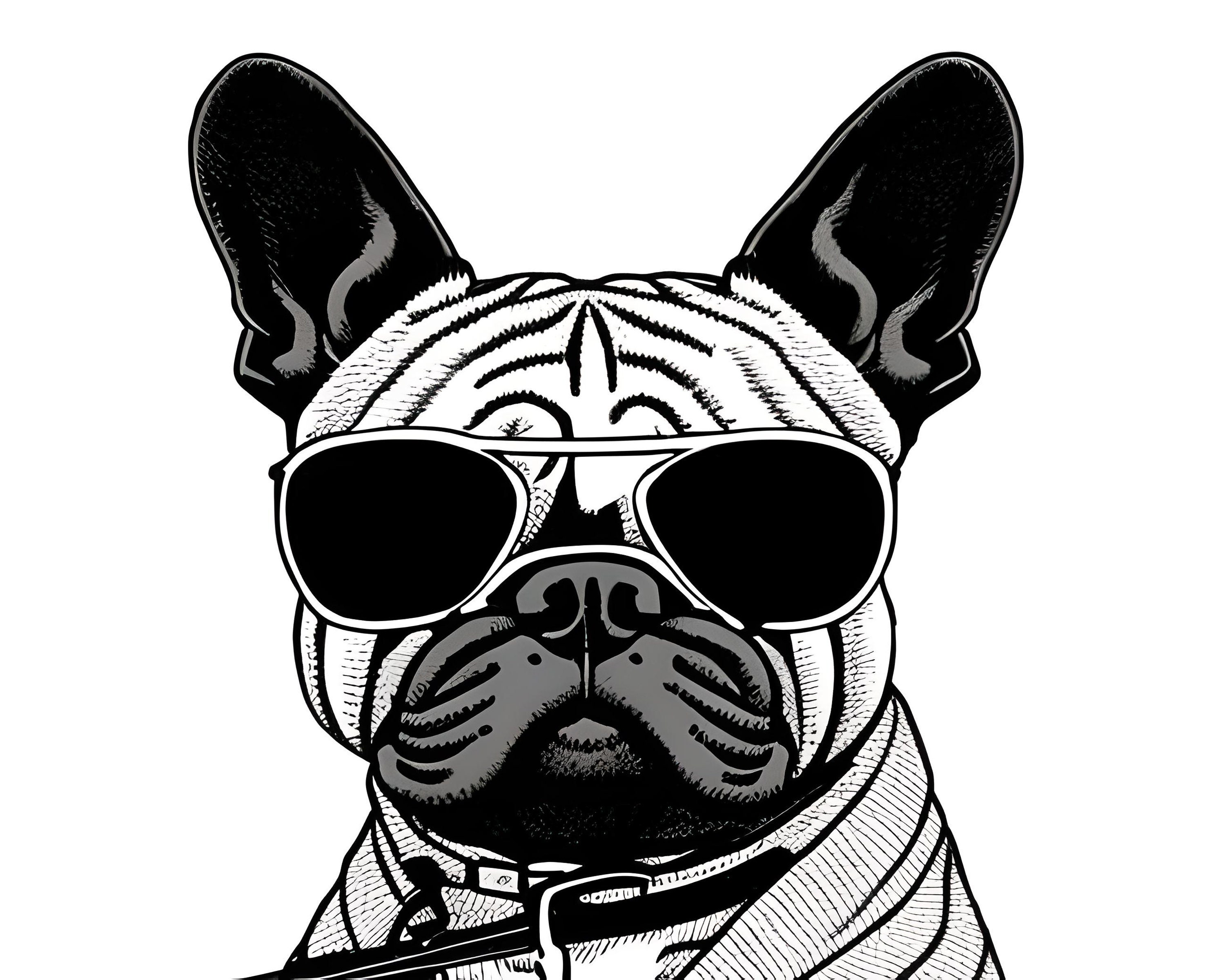 French Bulldog 02 With Glasses Black And White Abstract Etsy